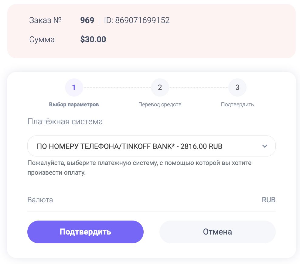 После выбора тарифа и платежного метода "Оплата в рублях", Вы будете перенаправлены на платежную форму.
